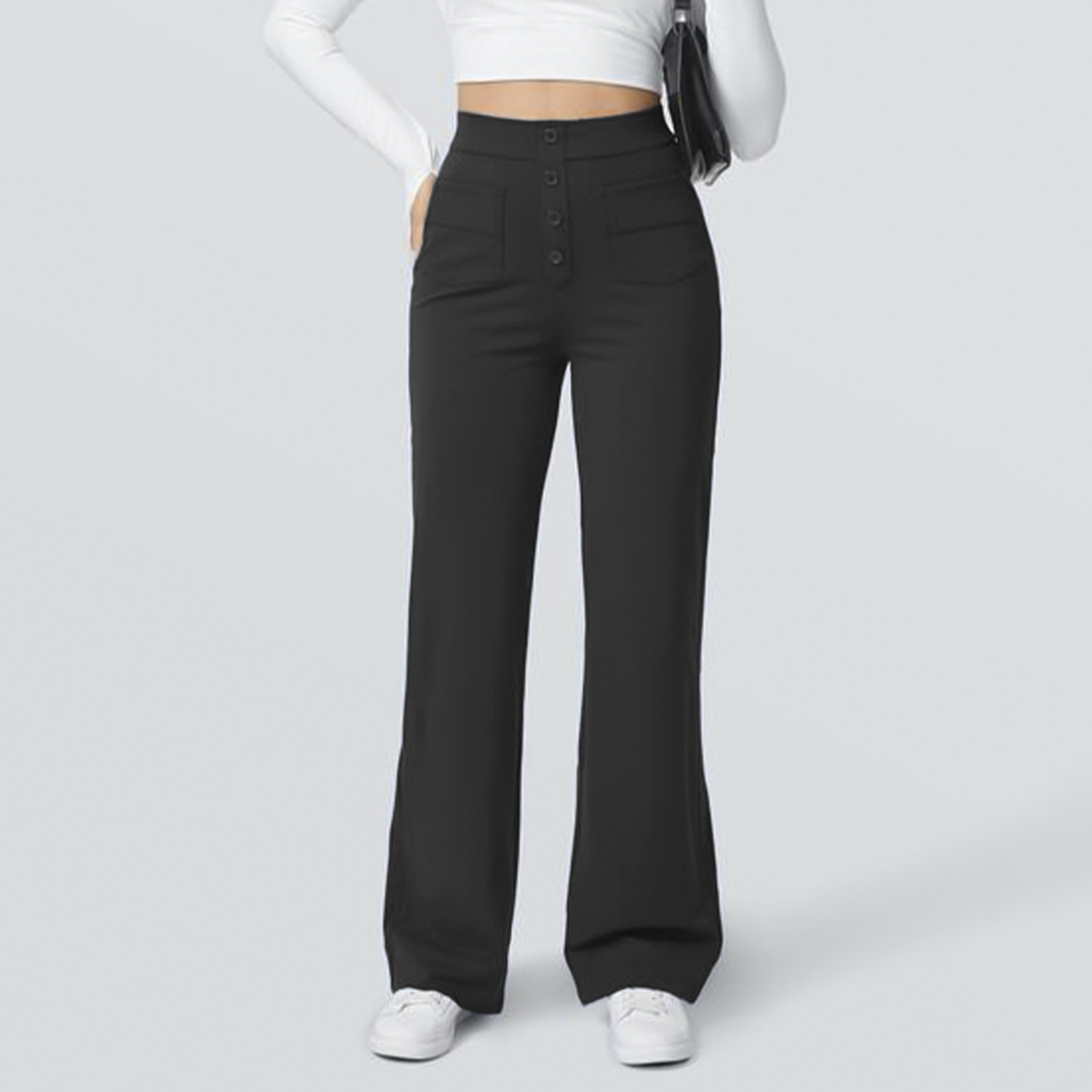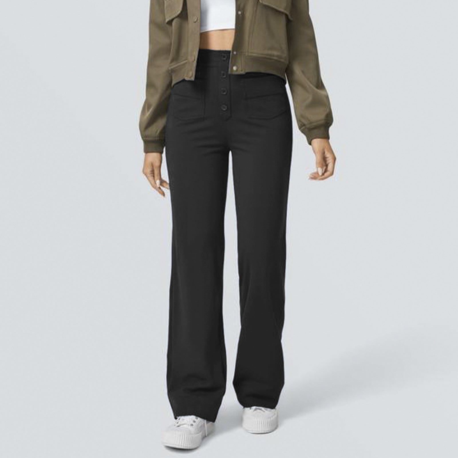 Fleece-lined Women's Pocket Brushed Outer Wear Stretch Commuter Straight Casual Pants